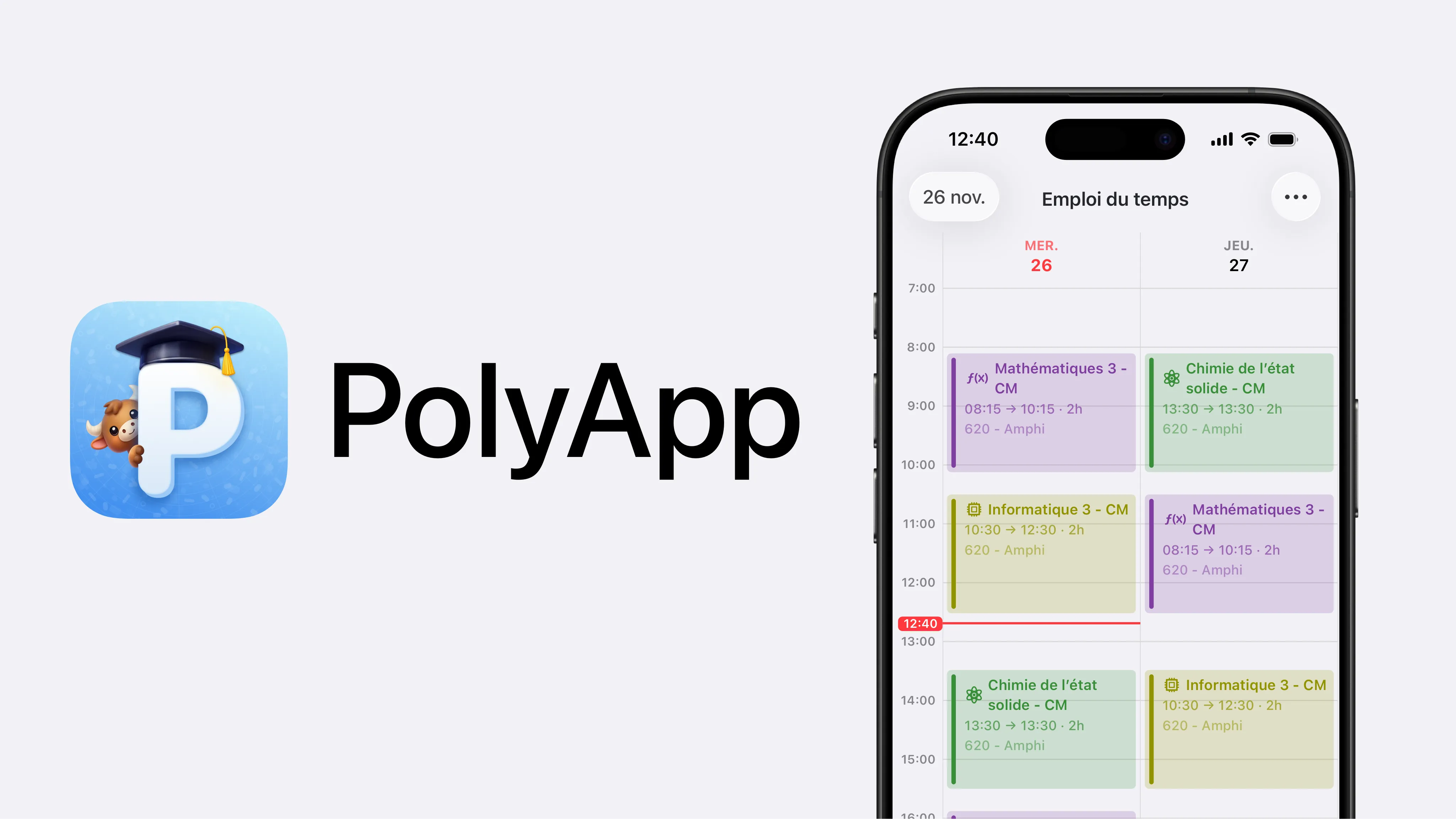 App iOS pour centraliser planning, tâches et notes, utilisée par les étudiants de Polytech Paris-Saclay.